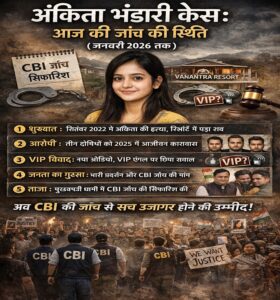 CBI के सामने चुनौती साफ है: पुराने सबूतों की दोबारा जांच, कथित VIP एंगल और यह तय करना कि क्या पहले की जांच में जानबूझकर कोई दिशा छोड़ी गई। यह जांच अब केवल अंकिता के लिए नहीं, बल्कि पूरी व्यवस्था की साख के लिए अहम बन चुकी है।